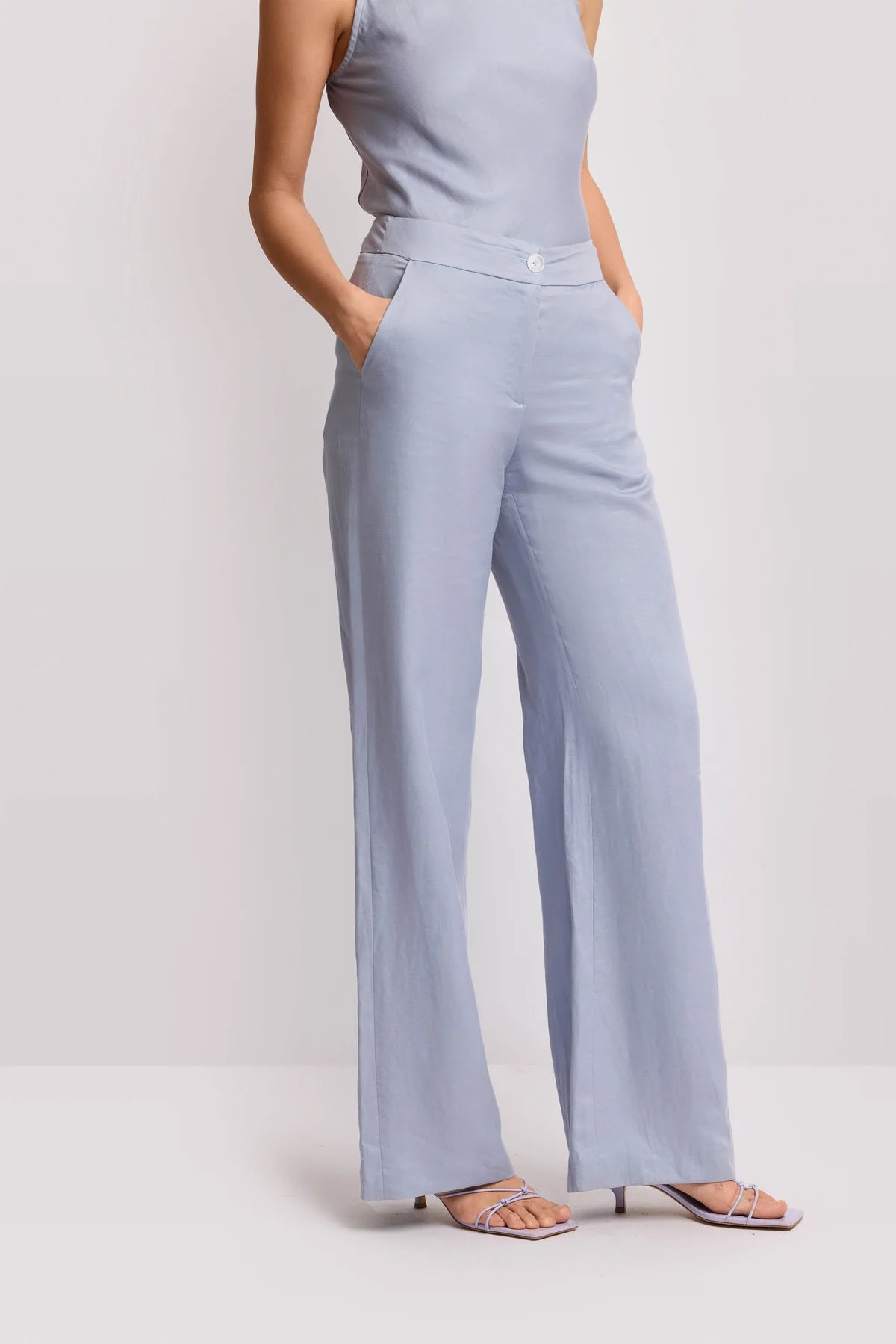 - Pantaloni wide leg della capsule Pure Verve con vita alta, chiusura a gancetto nascosto e zip laterale per un design pulito e sofisticato